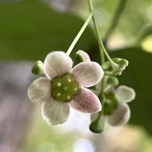 やっと果実に出会えました! クロヅル(黒蔓) *ニシキギ科クロヅル属 花期は7〜8月 東北から近畿地方にかけての日本海側や四国九州の山地稜線.林縁.林内に生える落葉蔓生本木! 葉は互生し、卵形〜楕円形で縁には鋸歯がある! 果実は3枚の翼を持つ翼果で果実の中には1粒の種子が入っています! ①果実をアップで! ②クロヅルの葉と一緒に! ③赤みが出てきました! ④月山で見た花! 花からこの翼果は想像していなかったので、やっと自分の目で確かめる事ができました❗️ 9月6日撮影 宮城県 白石市