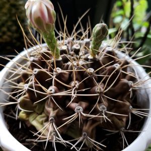 ギムノカリキウム・翠光冠モンスト。コレもベランダで剥き出しサバイバル中。暖かい時期の緑が嘘みたいに赤黒くなってるけど、これでもボリュームを保っているのでマシな方。以前は赤黒を通り越して白っぽく、ぺったんこになってしまったことがある。育て初めて6年目二突入したけど、あんまり大きくなってない。