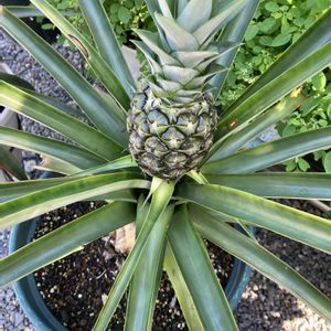 おはようございます😊 昨日のパイナップル🍍の様子です。 昨日、画像を園芸の先生に見ていただいて、花芽だと確認。パイナップル🍍は集合花。約150個の花が螺旋状に密集して付いてるそうです。花は下から順に咲き、花の色は紫色とのこと。 これから花芽が伸びてきて、花を咲かせ、実🍍になる。切り過ぎた葉っぱ😅無事栄養を花に届ける事ができるのか⁉️ まだまだ先は長い•••。2枚めは検索した花芽画像との比較。フフッ🤭花芽だぁ💕 昨日の大谷選手、10号ホームラン🎉。連戦お疲れ様。今日も頑張れ〜📣。 (2025/5/7撮影)