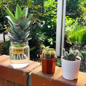 育っている3️⃣👀 実はまだパイナップルを土に植えていない💦