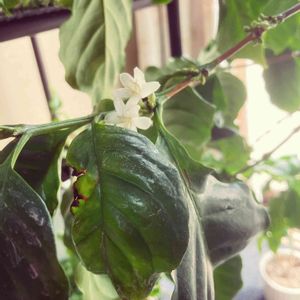 雨☂️ですねー コーヒーの木の花がちらほらと。 石鹸水みたいないい香り😮💨 気持ちは晴天で!