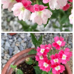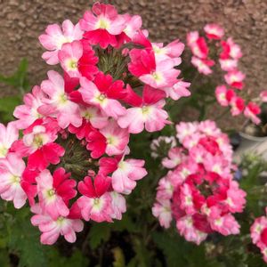 バーベナピンクパフェ🩷 可愛いお花が咲いてきました♪ 昨年お迎えした宿根バーベナ💕 たくさん咲いてますが ド・アップで🤗🎵 この配色癒される〜🩷🤍💕