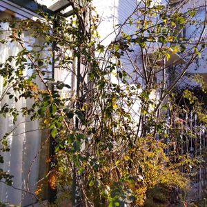 つるバラ“シンデレラ“。 これは一番最後の方に誘引作業しようと思って残してあります。寒さに当たって、いい感じに冬枯れしてきました。 ココ最近、誘引作業の(直前じゃなくて2週間以上前)に葉をむしるとかいうことが広められているのを某所でいくつか見かけましたが、私はそんなめんどくさくて意味の無いことしません。 木村卓功さんも書かれてましたが、本当は年明けまで放置してから誘引するのがベスト。 早くから作業してるのは、作業期間の都合で、やむを得ず早めに作業始めてるだけです。 ギリギリまで葉を残すことで枝に養分を戻してあげる。これがたくさん咲かせるための秘訣。