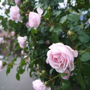 今日のバラ① ソフトピンクのつるバラ、シンデレラ。 やっと咲き始めました。この状態で雨が降ると傷んでしまうんですが、雨後に開いたのでギリギリセーフ😌 今年はずいぶん道に張り出してしまっているので、花後に切るなり引っ張るなりしなければ。すでにずいぶん邪魔っぽいわ💦💦 シンデレラは植えつけ数年はなかなかツルが伸びなかったのですが、徐々に伸びるようになり、今ではかなり立派に育ちました。昨年に比べると花がずいぶん大きいです。また、花色に赤味が強いように感じます。昨年まではもっと顔色悪い感じだったので😅 今年は他の花色も、濃かったり赤味が強くてかわゆく咲いたりしてくれました。肥料は変えてないんだけどなー???🤔