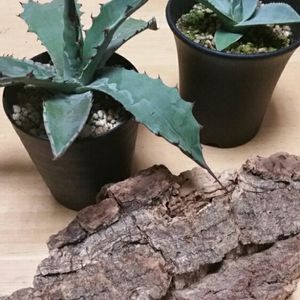 色々と興味を持たれた方も多かった植物祭でゲットしたのはこれです❗ アガベ 武蔵坊 アガベ ドラゴントゥース 大株展示のドラゴントゥースがあまりにもカッコよかったので一目惚れ😌🌸💕 手頃なサイズの武蔵坊も荒々しさがツボにはまりました。 アガベに心変わりしないように、ビカクの株分け用に、コルク板がお買得でしたので大きめからチョイス🎵しっかりビカクのことも忘れていませんよ🎵