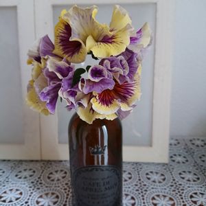 お庭でたくさん咲いているパンジーをお家でも楽しもうと切り花にしています。 春の香りがします🌸
