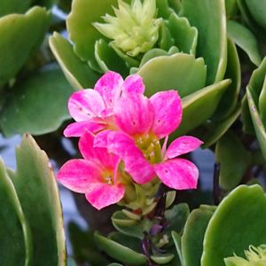 先月の大寒波、屋根の下に避難させたのに雪を積もらせてしまった朧月。花芽が出ていました😂 たくさんの多肉が🌟になってしまったけど、朧月は強い‼️