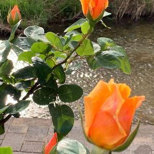 我が家の薔薇 黄色からオレンジ色に 色変化しつつ… 今度は何色に色変化するのかしら?