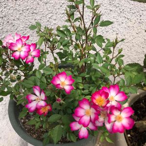小さな小さなミニバラ。 一重です❣️ 本当はもっと薄いピンクが好きですが、肥料が効きすぎたみたい😅