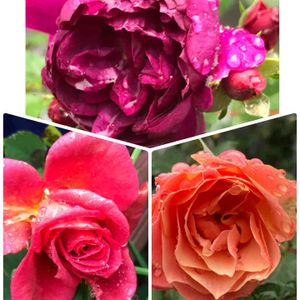 雨☔️に濡れた庭のバラ上のバラはミニバラで拡大して写しています。 寒い中咲いてくれてありがとう💕