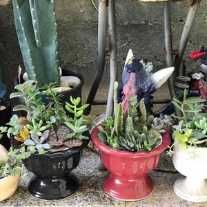 良く育った多肉や個性的な観葉を陶器の鉢に植え替えるのに夢中^ - ^植物達がより引き立つように鉢を選び、枝をカットしたり苗を間引いたり〜