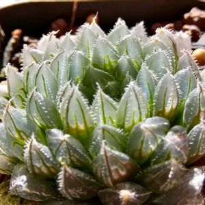 僕のスペシャル実生苗 Haworthia cooperi var. gordoniana, IB12434, NE of Zuurbron, foot of Hankey Pass 色もね、サクラ色でかわいらしいんですけど、鋸歯の長さと均等さがね。僕の琴線に触れる。 曇りの日の撮影だと透明感がイマイチですね 今、出品できる苗が足りないからこれも出そうと思ってる…