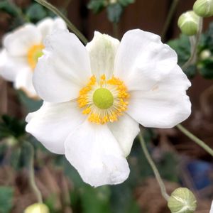 秋明菊(シュウメイギク) *別名:貴船菊(キブネギク) 名前に「キク」とつきますが キク科ではなく キンポウゲ科の植物で アネモネの仲間です