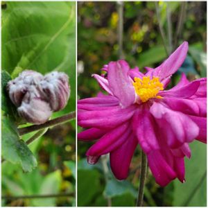 わーい うちにも 咲いた💕💕 去年 姉から貰った鉢植えのシュウメイギク 庭から鉢上げしたので 🌿チリチリになって咲かずじまいだったけど😰 零れ種で咲いている いろいろな花の間から 咲いているのを今朝発見❣️ 🌿が出ているのさえ 気がつかなかった💦