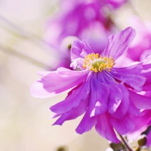 🪴草花たち その62 シュウメイギク(秋明菊) ピンク色の一重咲きの秋明菊に出会えました。 落ち着きのあるピンクが大人な雰囲気です (*^^*)♡ 9月第一投は 秋の訪れを思う秋明菊で💓 「夕月に 細き首のべ 貴船菊 」 関木瓜 「鳶ひくし 秋明菊の 紅ひらく 」 柴田白葉女 皆さま、良い一日を( ´ ▽ ` )ノ 🔖yukoさん主催 🏷ピンクワールドへようこそ 🔖 🏷ピンクワールド に参加します♡ ☀️ *・゜゚・*:.。..。.:*・'🍃✨・*:.。. .。.:*・゜゚・* ⌘ メモ ⌘ 🔸科名・属名 キンポウゲ科 イチリンソウ属(アネモネ属) 🔸学名 Anemone hupehensis var. japonica 🔸英名 Japanese anemone Japanese thimbleweed 🔸別名 シュウメイギク(秋明菊)は「花壇綱目」に記載 アキボタン(秋牡丹)は貝原益軒「大和本草」に記載 その他、 貴船菊 しめ菊 紫衣菊 加賀菊 越前菊 唐菊 高麗菊 秋芍薬 など 🔸由来 「秋冥菊」(中国) この世のものとは思えない可憐な咲き姿に因む 「貴船菊」(日本) 京都の貴船山に多く帰化していたことに因む 🔸原産地 中国 台湾 🔸分布 東アジア 🔸花期 8月中旬~11月 🔸花色 赤紫色(ピンク) 本来の花色 白 🔸特徴 半常緑性大型多年草。宿根草。地中の根は太く 長く伸び、いたる所から不定芽を出す。 秋の風情を感じさせる優雅な花で、切り花、花壇、 鉢植え等広く利用される。 日本へは古い時代に中国から渡来した帰化植物で、 京都の貴船地方に野生化したものが見られる。 これがキブネギク(Anemone hupehensis)で、 本来の紅色の八重咲きシュウメイギクである。 現在では、類似のいくつかの種や、これらの 交配種も含め総称的に「シュウメイギク」と呼ぶ。 根出葉は3小葉からなり、小葉は長さ5~7cm、 幅3~7cmで3~5裂する。小葉には小葉柄があり、 縁は鋸歯。 茎には葉が2~3枚ずつ輪生し、下部のものには 短い葉柄があり、上部のものは小さくてほぼ無柄。 夏の終わりごろから花茎が伸び出し、先端にまず 1輪、次にその両わきに1輪ずつ、更にそのわき という順に花を咲かせる。 花びらのように見えるのは萼片で、花弁は退化 している。 開花後は綿毛に包まれたタネが実るが、結実し ないのが一般的で、株分けで増やす。 近縁のアネモネなどと同様、プロトアネモニン を含み有毒。乳液に触れるとかぶれを引き起こす。 🔸品種 古くから渡来した「フペヘンシス」をもとにした 在来品種と、欧州でさらに「ビティフォリア」 などと交雑改良された品種が市場に出ている。 一重咲き、八重咲きがある。 葉は比較的大きめで、表面の手ざわりがカサカサ している。 背丈は品種によって違いがあり高性種が多いが、 やや小さめの矮性のものもある。