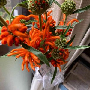 💚🧡クリスマスキャンドルスティック🧡💚 💚レオノティス·ネペティフォリア💚 🧡タマザキハジキ🧡 名前がいろいろあるようで··💦 中には🦁ライオンズイヤー🦁とか🦁ライオンズテール🦁という名前もあると読んだのですが、イマイチ..🤔 🧡それはレオノティス·レオヌルス🧡のほうなのかな🙄?という気がしたので今回はナシにしてみました。 またカエンキセワタ(火焔着せ綿)とも言われ、“炎のような”・“綿を着せたような”と言った意味でしょうか🙄確かにビロードのような質感(毛とか綿のよう)で、炎のような色のお花でした🙆♀️ でも実はこちらも、🧡レオノティス·レオヌルス🧡のほうの名前かもしれません😓ネットで調べると開くものにより、一緒にして書いているものと、「別物です」と書いているものとあり、本当、イマイチ分かりませんでした😥 はっきり分かったのは、 私がもらった💚レオノティス·ネペティフォリア💚(クリスマスキャンドルスティック)のほうは、三角葉(シソやランタナの様な葉)で、🧡レオノティス·レオヌルス🧡のほうは細葉で、花の咲き方もこんなに丸くはならず、もっと吹き出すような(?)形に咲くようです。 🤔..長々同じような名前を並べ、この説明が分かりにくいですね😓 でもとりあえず、自分の覚え書きとして。。😅💦