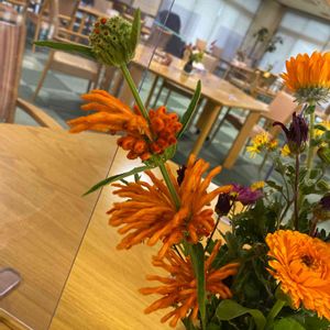 💚🧡クリスマスキャンドルスティック🧡💚 💚レオチノス·ネペティフォリア💚 🧡タマザキハジキ🧡 あーぁ😓 今月頭に、このお花を植えているご近所さんから『花壇を整理するから持って帰って~』と2本頂きました💐 その時は大きいほうの下段のみ咲いている状態(オレンジ)で、あとは全て蕾(緑)でした。くださった方も『寒いからもう開かないだろうけど、蕾でも挿してたらいいよ☺️』とおっしゃられていましたが、日毎にオレンジ色が増え、思っていたより楽しませていただきました🧡✨ しかし今週頭、ついにここまで萎れてしまったのでお別れをすることに..👋😢 ◦◦残念だったのは、こんなになるまで写真を撮っていなかったこと😞💧あぁ、なぜ撮りそびれたのか··💦本当に残念でなりません😭 ただ、アップにしてみると、まだまだ元気な部分もあったので、続けて投稿しようと思います🙇♀️