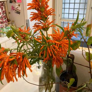 花はオレンジ色、キンギョソウに似ていなくもなく、長さは最大5cmほど。香りはなし。 レオノティス(和名:カエンキセワタ) 投稿したらすぐマッチしました^-^
