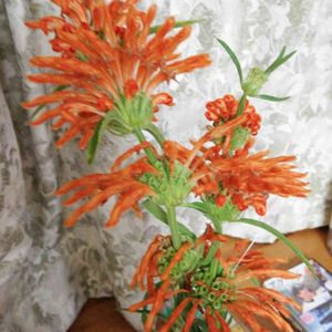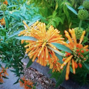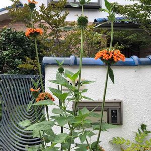 先日、名前が不明で投稿したツボミのその後です。 よく見るとポチッと色づいているところもあり、 成長している様子を見ると レオノティス 別名カエンキセワタ (火焔着せ綿) のようです。 情報を提供して下さった @ふふ さん ありがとうございます!