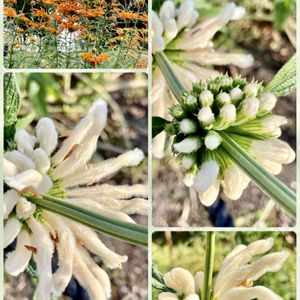 先月からまだガンバって咲いている オレンジ🧡のレオノティス(ライオンズイヤー)🦁…好きなんです🥰 な、なんと‼️Σ੧(❛□❛✿)🤍🤍🤍🤍 シロバナのレオノティスを発見❗️ これは一大事😱まだ咲き始めたばかりです、全開するにはもう少しかかりそぅ‼︎ …寒い日が続くけどガンバって咲いてくれますように🙏✨