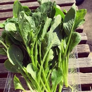 家庭菜園のアスパラ菜 無農薬なので所々、虫のお食事に☺️ クセが無いので色々な調理法で、 昨日はナムル😋