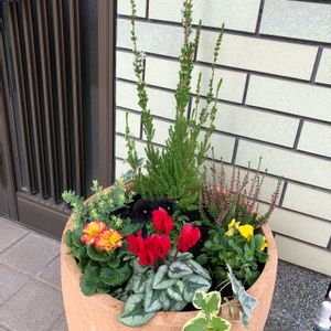 高さ43cmある12号鉢💦💦 重くて土もいっぱい必要だったけど寄せ植えしました🌸