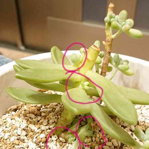 ✂️ちょんぱ✂️した春萌さんから子株が4つもでてきました🙌🙌 2つは以前にも気付いていたのですが、下2つは気付いておらず、嬉しい発見でした😁 大きく育つといいな🎵