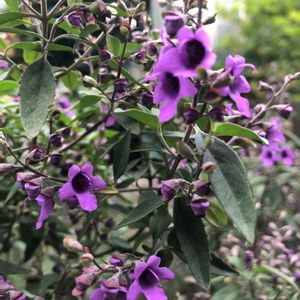 葉っぱ🌿も花🌸も小さく 葉っぱ🌿はハーブの様な香りが有りますが 花は香りがありません💜 130㎝程の木です🌳 ミントブシュと教えて頂きました💕
