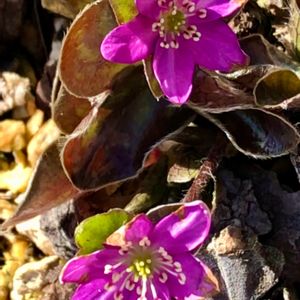 こんにちは😃☀️🌤 今日の私のお花はユキワリソウです🌸🌸 2輪咲いてくれたので嬉しいです(((o(*゚▽゚*)o)))♡💗💗💗🍃🍃💗💗💗🍃💗🍃💗 ◎ ユキワリソウ 雪割草とは 漢字書きの「雪割草」は、キンポウゲ科ミスミソウ属の ミスミソウ オオミスミソウ スハマソウ ケスハマソウ を指し、通称名(別名)として広く一般的に使われている名前です。 なお、カタカナ書きの「ユキワリソウ」は、サクラソウ科サクラソウ属の高山植物(多年草)を指し、日本全土の亜高山帯から高山帯に自生します。 雪割草の種類には、 標準咲き 千重咲き 三段咲き 二段咲き 唐子咲き 丁字咲き 妖精咲き 日輪咲き 乙女咲き まとい咲き 撫子咲き 等の他、変わり葉、斑入り葉があります。 ◉ 雪割草・春の管理 地域によって異なりますが、新葉が伸びて固くなって くる4月中旬頃まで風通しの良い場所で日光に当てます。 以後は、風通しの良い明るい日陰で管理するか、遮光率75%前後の遮光ネットを使用して管理します。 ◉ 雪割草・夏の管理 夏場の肥料は厳禁で、日光に当てず風通しの良い明るい日陰で管理します。 ◉ 雪割草・秋の管理 明るい日陰であれば、日光に当てなくても特に問題はありませんが、日光に当てるときは涼しくなってきてからで、葉焼けを防ぐため遮光ネットを使用します。 ◉ 雪割草・冬の管理 地域によって異なりますが、葉の痛みを防止するため、霜や冷たい風が当たらないようにフレーム内等で管理します。 室内等で管理すると温度が上がり過ぎるため、花茎が伸び過ぎたり開花が早まったりします。 🍀毎年綺麗に咲かせてみたいのですが、他の色は葉っぱがほんの少し出ただけです😥 夏の管理と冬の管理を色々工夫してたくさんの花を咲かせてみたいです🤗🌸🍃💗🍃🌸🍃💗🍃🌸