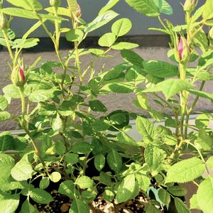 初めての⛄️を経験したミニバラ2つ 春になった途端どっしりしてきた 蕾たくさんのピンクのミニバラ もうすぐ蕾がひらきそう マンダリナコルダナは根本からシュートが4つも出てきていてミニではなくなっている