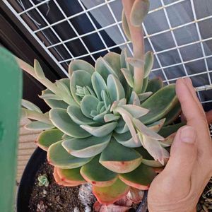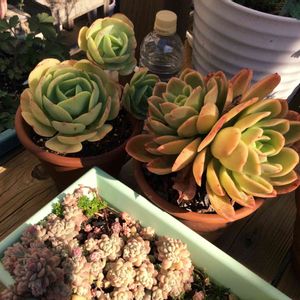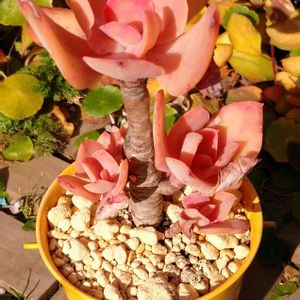 巨大エケベリア、抜群の安定性です😆 手前のプロリフェラが普通サイズ、ゴールデングローの分頭も進み、とっても元気😃
