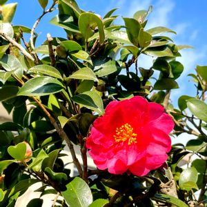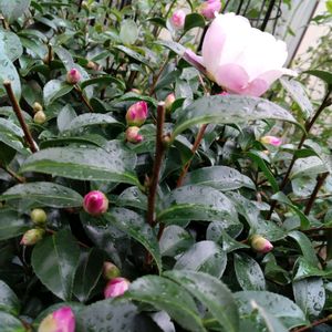 山茶花のお花が咲き出しましたよ 沢山蕾があります 満開に咲いたらまるでバラのようです✨