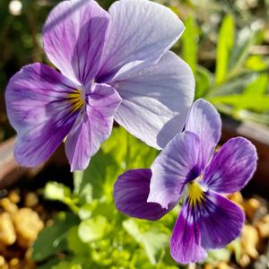 今晩は 庭に咲く ビオラと山茶花の花