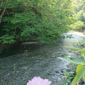 おはようございます😃 今日はお天気悪いけど、過ごしやすくなりそうですね❇️ 先日の美杉での一枚です❇️ 山の中で気温が違うのか 「シャクナゲ」が咲いてました🎵この川のの前にある小さな羊羮屋さんで美味しいレア物の羊羮買いました🎵美味しかった~