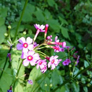 おつかれさまです😃 今日は友人とふたりで車で日帰り旅行に行きました🎵 透き通った美しい川を見ながら、美味しいアマゴ料理を食べてきました🐟 そのお店で撮った美しい山野草、少しずつupしますね😉 「九輪草」です❇️