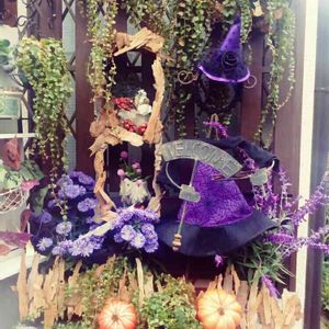 ダイソーの魔女帽子の先っちょ切ってドレスにしてみましたよ ダイソーの切り株鉢にあわせて長年貯めてたモッコウバラの幹の樹皮 はりつけて巣穴っぽくしてみました!