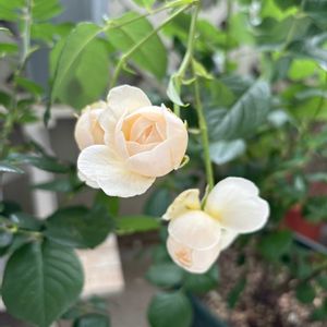 我が家のバラ 7番手はウィンダミアでした 昨年廃盤になると聞いて購入したので初めましてのバラです 伸びてきた茎が細かったので花はやや小ぶり そのせいか香り控えめ でも爽やかな香り 外側の花びらがどれも茶色になってしまい咲くのが心配しました 花色はクリーム 咲き進むとホワイトに色変わりするそうです 色変わりする品種は初めてなので楽しみ