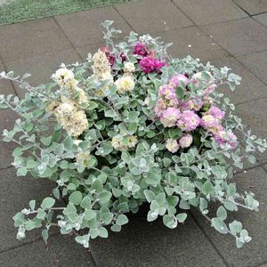 八重咲きストック・ベイビー シリーズ の寄せ植えしました♡ 3本のヘリクリサムは、挿し芽で 育てました。 (来春の成長の様子は 4月21日picです)