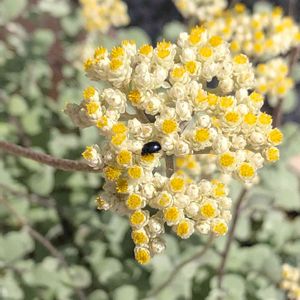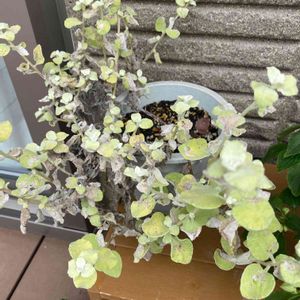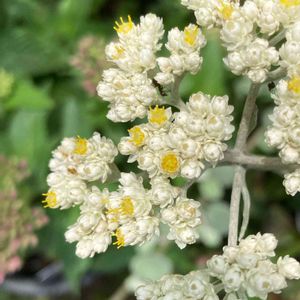 おはようございます😊 ヘリクリサム・ペティオラレの花が咲いてます🌿色が薄くあまり目立たないです🌼 虫が多い時期ですね🕷