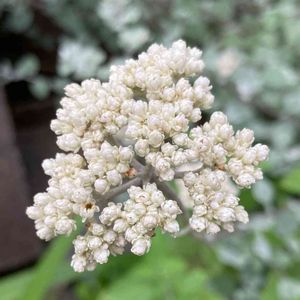 木曜モフモフ~🎶シルバーリーフのきれいなヘリクリサム・ペティオラレのお花です😊蕾なのか、これでもう咲いているのかがよくわかりません😅もう少し変化を見てみます🤗