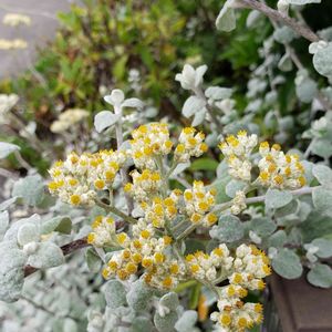 ヘリクリサム ペティオラレ🌱🌱 よそ様の庭 銀葉が美しい脇役と認識してたけど、こんなに美しい花が咲くなんて驚きましたー‼️🤗