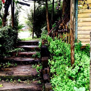 園芸店の庭。小屋から店舗を見たところ。 季節ごとに違う表情を見せてくれる大好きな場所です。 小屋のベンチに座って眺めます。