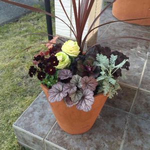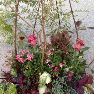 lucygrayさんで作らせて貰った寄せ植え。 ピンク系でハッキリしたコントラストで作っています。