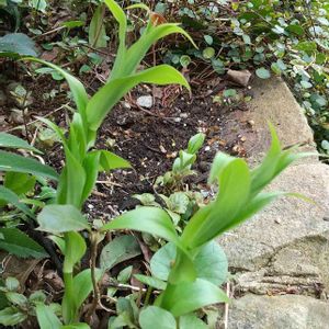 黄色いお魚が、葉っぱの海を泳いでました🌿💛💛💛🌿スイスイ〜《紀伊上﨟杜鵑草》のツボミ🎶