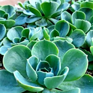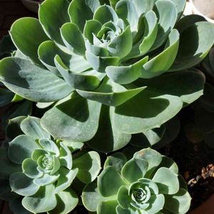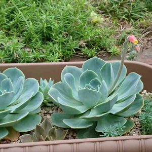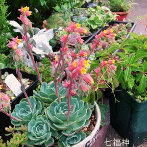 さて、問題のこの大きなわたし。 七福神で合ってるのか… たぶんそうだと思うんだけど… お店で「エケベリア」として売られていました。 まわりの子たちは、前からうちにいた七福神です。