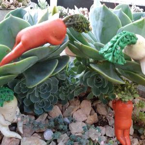 寄せ植えの中でどんどんきれいになった七福神。 穴あきも気にならなくなってきた!