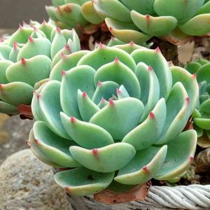 七福神 数年前七福神を知ってから あちこち店を探したけど並んでなくて…。 そんな時、主人が知り合いの方から 3株ほどわけてもらってきてくれて それから大事に育ててきた子達です もう20株以上あるんじゃないかな? 通りすがりの方に差し上げたり 知り合いにプレゼントしたり とても喜ばれてる子です 夏顔になってきましたね 爪先がほんのり赤くてほんとに 可愛いです 花芽をあげてる子もちらほら出てきました!