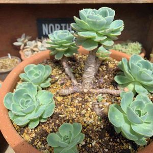 ふと見たら、七福神の茎にすごい根っこが出てた💦💦 こういうときって水吸えてへんから頑張って根っこ出すんやんなーと思って、抜くのも大変やからイヤやったけどとりあえずチョンパ💦 茎はキレイ✨ どういうことやろ?? まぁ下の子たちにたくさん日が当たるようになったからいいかー😌