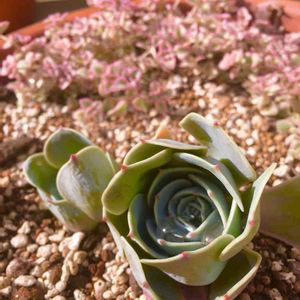 タニパト続けてたら、こちらも花芽らしきもの発見! 親株からたくさん出ている子株ちゃん達からチラホラ❤ 七福神に魅了されて1年と数ヶ月! 秋から冬に掛けて突然の雪にかやり傷んだ我が家の七福神。その七福神がなんとか越冬して春を迎えようとしてくれています(๑o̴̶̷̥᷅﹏o̴̶̷̥᷅๑) このまま頑張って成長していってね!!