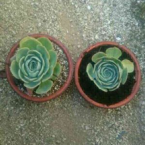右がバーグ堆肥のみ 左は水捌け良さげな私テケトー配合 どちらも駄温鉢で管理です どちらが好きですか?